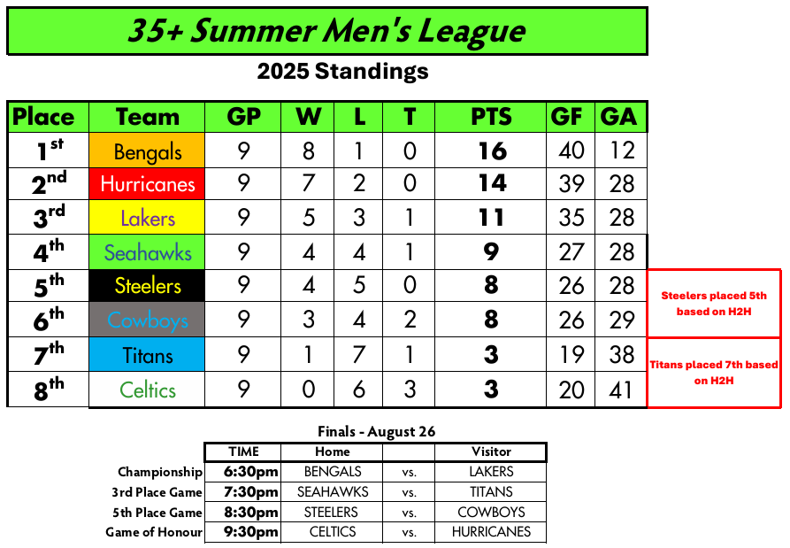Your homepage for all the information you need to follow the Bill Bolton 35+ Summer Men's League