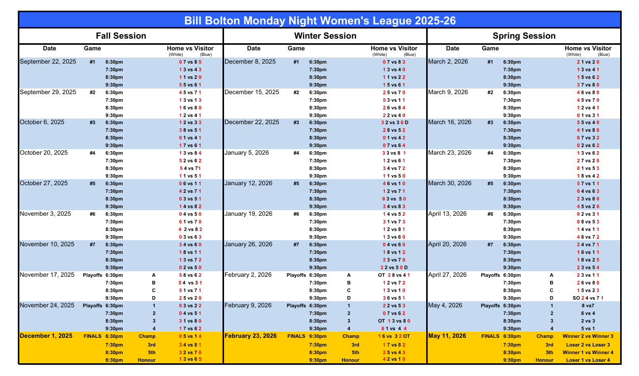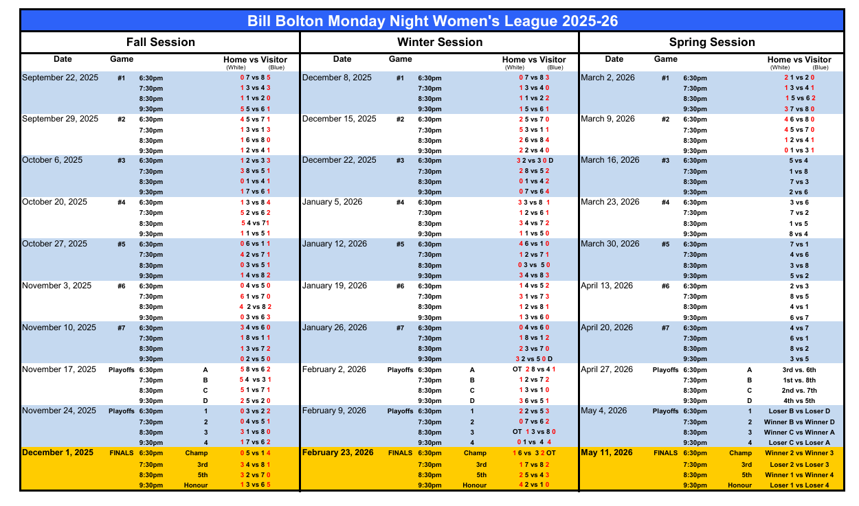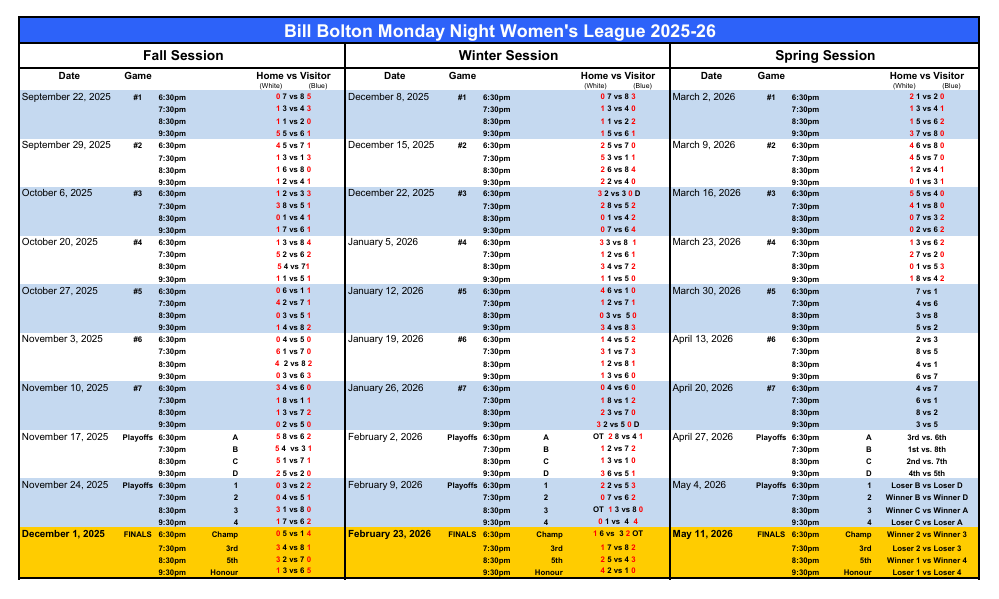 Your homepage for all the information you need to follow the Monday Night 35+ Women's League