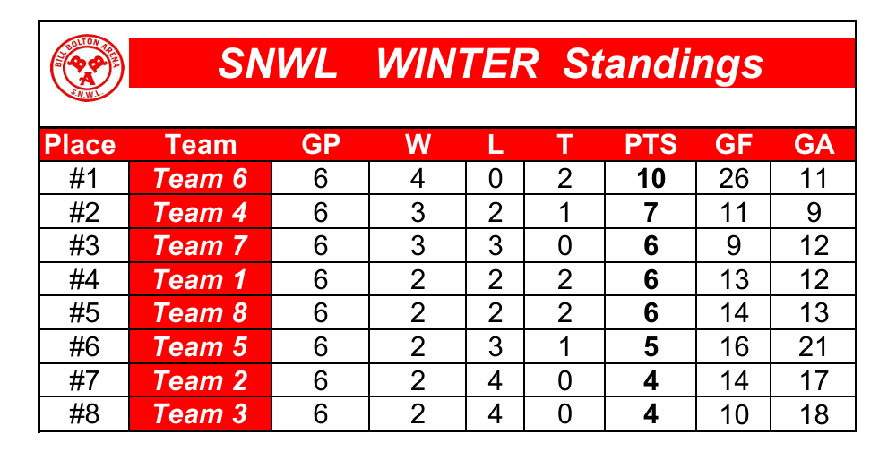 Winter Standings