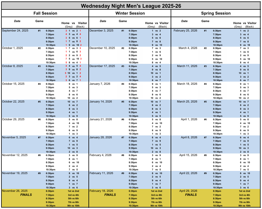 Your homepage for all the information you need to follow the Wednesday Night 45+ Men's League